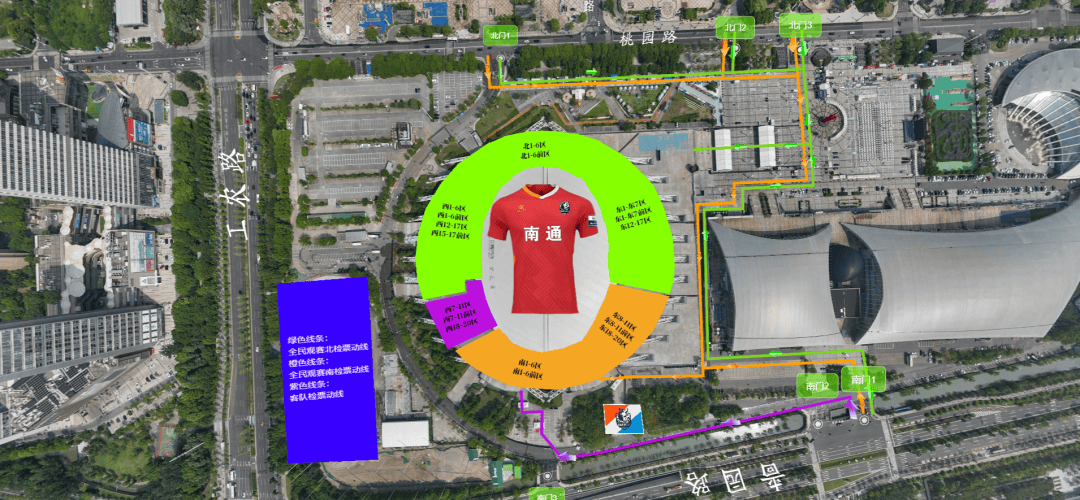 球迷朋友可以查看相应的寄存处、入场路线、预检口、安检口、检票口。比赛当天跟着颜色走,顺畅不迷路!