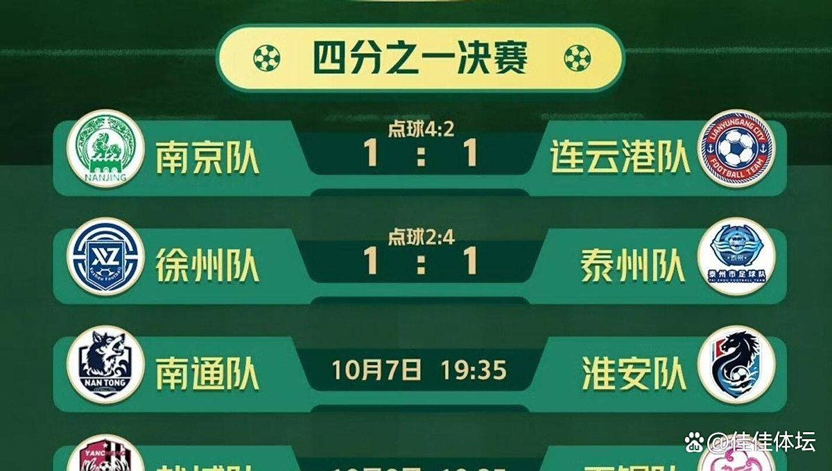 已经结束的两场苏超四分之一决赛都打成了1-1平局,最终都通过点球大战决出胜负。